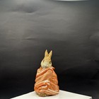 Beswick Poorly Peter Rabbit was modelled by David Lyttleton and was first issued in 1976. It comes under the BP3b, BP3c or BP4 back-stamp. This figurine displays a Brown-red and white blanket although later models have a lighter brown blanket. Production finally ceased in 1989