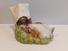 This cute little figurine was only produced by Royal Albert but not by Beswick. It was modelled by Amanda Hughes-Lubeck and was issued in 1991. It was discontinued in 1997. It has the Royal Albert back-stamp BP-6a.
