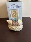 Jemima Puddle-Duck Made a Feathered Nest: This figurine was modelled by David Lyttleton and was issued by Royal Albert in 1998 and discontinued in 1997. It has the Royal Albert back-stamp BP-6a. Jemima can have either a mauve or a pink shawl.