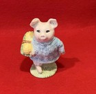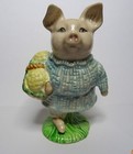 In this variation Little Pig Robinson is wearing a blue Checked dress and is carrying a basket with cream cauliflowers. The Royal Albert figure was introduced in 1989 and ceased production in 1998. It has the BP-6a back-stamp.